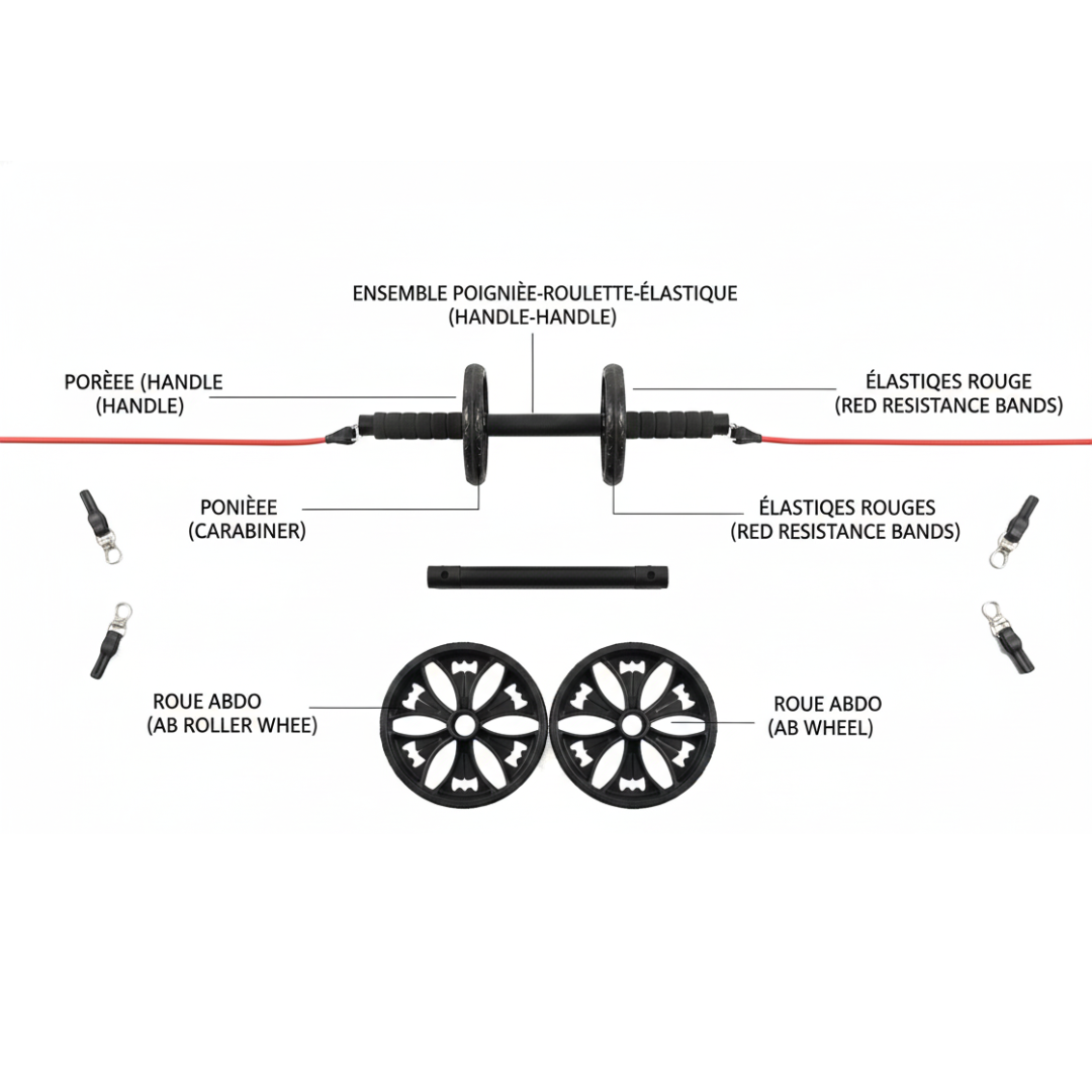 Le Kit Abdos est notre solution ultime, conçue pour les passionnées de fitness et de Pilates qui souhaitent un équipement complet et polyvalent. Il regroupe les accessoires de nos niveaux précédents en y ajoutant les outils les plus performants pour un renforcement profond, un gainage intense et l'intégration du cardio à domicile. Ce pack vous offre la qualité et l'efficacité d'un studio professionnel.